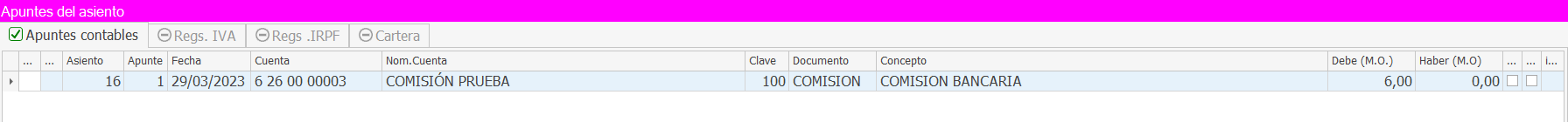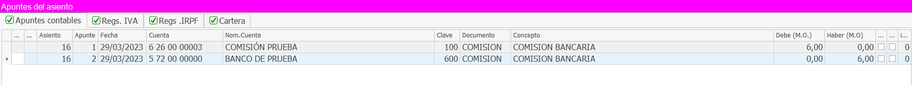 Una vez volvamos a la entrada de apuntes solo tendremos que cerrar el asiento que hemos realizado.