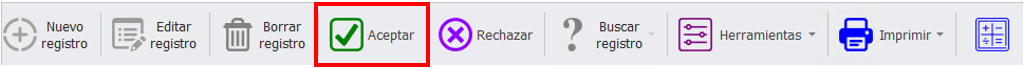 Cuando hayamos terminado de rellenar los datos, pinchamos en “ACEPTAR” y se nos generará un registro.