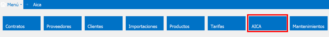 Si es usuario de G6 Contratos: seleccionar la opción del menú AICA. Aunque desde Contratos también podemos acceder, mediante la solapa.