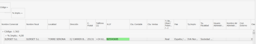 Se expandirán todas las líneas agrupadas en función de las columnas seleccionadas código + % impuesto